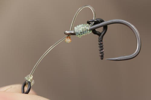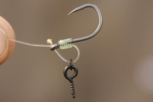 Step 6. Mount a Flexi Hook Screw onto a ‘D’ – formed by tucking the tag end back through the eye and melting the hooklink with a lighter.