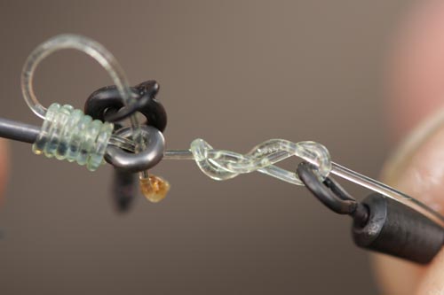 Step 4. Tie on the swivel, that will be used to tie the hook section onto, using a simple 3 turn Blood Knot.