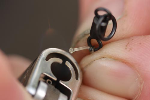 Step 8. Use a lighter to ‘blob’ the tag of the Blood Knot for greater strength.