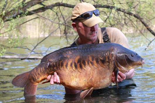 The fish then did a lazy circle of about a rod length and came back for another mouthful. In total, there was only six or seven boilies worth of bits in the swim, yet after a full hour of sporadic feeding the fish was still on the bait. The slow movement meant that we saw the boilie enter, then exit, the huge mouth a few times before he finally made an error. This time, the bait was not coming out and it was almost possible to register the change of facial expression as the hook did its job. Do carp swear? If so, then that was the moment. Forty-four pounds of stunning mirror then took off at high speed and chaos ensued… To be continued in Part 2