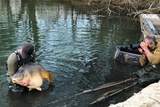 After an obscene amount of effort with poles, radios and ‘Pilates’ style stretching my baited rig lay before me, complete with a little length of elastic waiting to do its worst. Inevitably, the fish didn’t read the script for ages and avoided the area for half a day whilst I lay amongst the nettles, mooched up and down trees and rotated tea making duties with Andy. But come they eventually did, and it was one of the real jewels that gave me my answer. A true Leney, sixty years old and always around forty pounds is the best way to test any rig. I was close enough to watch the bait enter his mouth. Again, the fish acted unhurried and moved slowly. The hooklink straightened as the great carp rose up but did not tighten all the way to the lead. As soon as the fish made contact with the elastic, it stopped. Its great pecs fanned quickly, and I could see flashes of pale colour as its mouth worked hard to spit the hook out. The hook remained firmly in position as it was held there by the gentle tension of the sock elastic. The only way the fish could have eased the pressure keeping the hook in would be to lower back down towards the lead. If you hooked a human in the mouth, I have no doubt they would move towards the pressure to ease it, but I do not believe carp have this level of problem solving; certainly not yet.