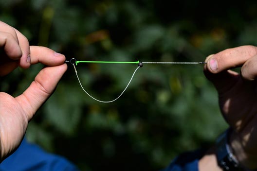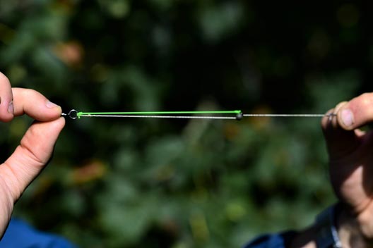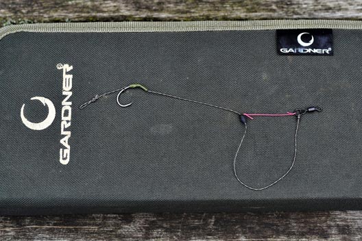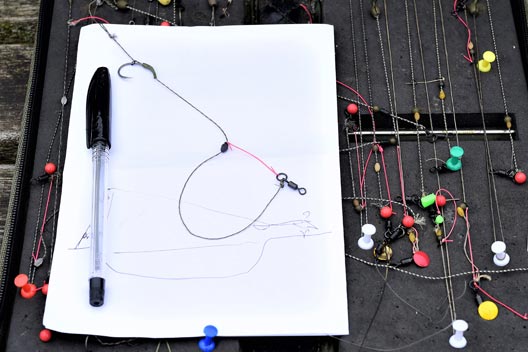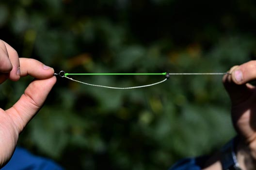 The ideal elastic for this rig is steady, from the first hint of tension ‘till it straightens against the lead. Nowadays, I use thin marker elastic. Yes, it’s red but I have yet to see any negative effect from this. We may not like it, but it’s carp we are trying to catch, and their reaction is what matters. This elastic is strong and the perfect tension.