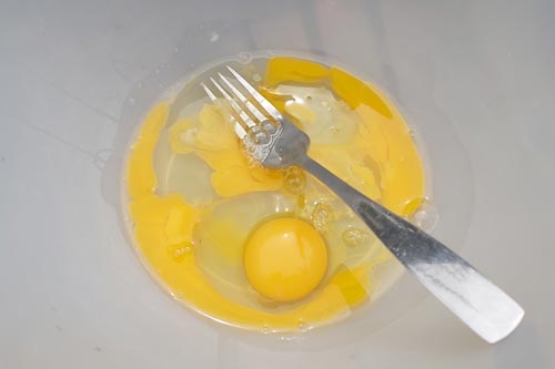 Step 1. Crack three large eggs into a mixing bowl and whisk. I like to use the best quality eggs, ensuring they are as fresh as possible too.
