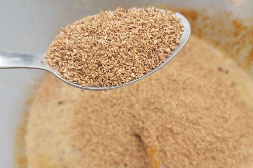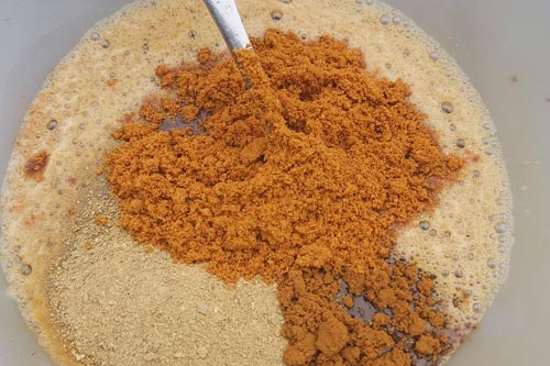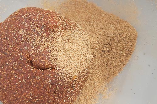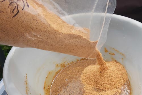Step 4. It is now time to add your cork dust into the mix. I start by adding 6 big tablespoons into the mix. Do not worry too much as this can be adjusted later down the line.