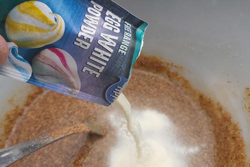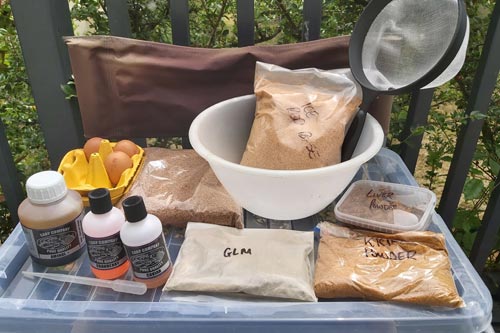 Step 5. At this stage I also like to add in a packet of egg white powder, that you can buy in the baking section of any supermarket. This helps to give the baits a nice tough skin once boiled. Ensure it’s all well mixed, so that all your liquids, powders and cork granules are evenly distributed throughout the mix.