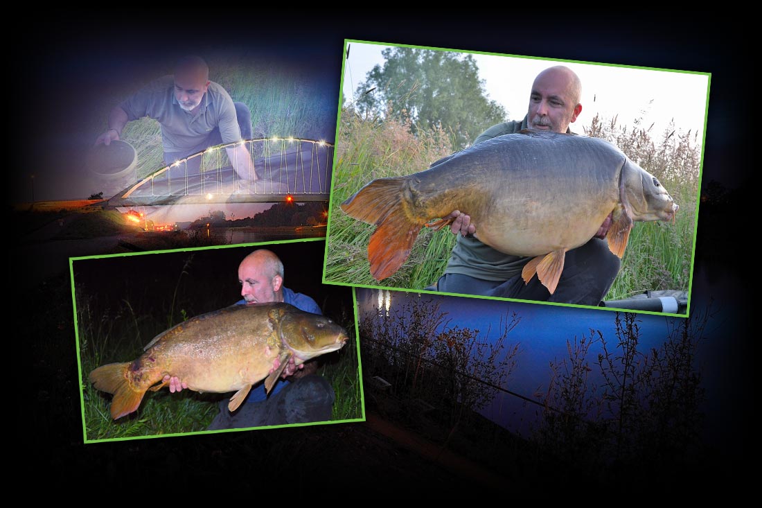Ik ga niet met gewichten gooien omdat dit niet mijn ding is en omdat dit eigenlijk niet ter zaken doet, het was een mega vis en ik was on top of the world en weer op die pop up rig en die salty squid pop up. Het was zondag en het was dus weer tijd om naar huis te gaan, om de volgende dag te gaan werken. Maar er werd al een plan gesmeed om het volgende weekend terug te gaan. Die week regende het echt enorm hard en veel en er was hier en daar overstroming, maar dat hielt ons niet tegen om vrijdag weer te vertrekken richting kanaal. Ik was met een engelse maat (die al een paar weken in Belgié en vooral op het AK bezig was) op pad en we dachten om eens een ander stuk te bevissen dus we besloten om even te gaan zien op het ander stuk. We reden op het jaagpad en opeens zag ik een vis draaien!! Iets dat ge niet vaak ziet op het AK en we stopte en ging kijken, en ik zag nog een vis en nog een vis!! En er was hier een overloop waar water uit de omgelegen velden in een beek terecht kwam en die beek op ze toer uit kwam in het kanaal. Het was nogal wat water en daardoor trok het blijkbaar vis aan, en zo pakte we hier uit opdat het nogal logisch was met zoveel beweging van karper (nee nee het was geen brasem of andere kleine vissen) dus ik ging links zitten en hij rechts met één hengel elk in flow dat veroorzaakt werd door het water dat uit die overloop stroomde. En de andere hengel werd wat verder neer gelegd, achter af gezien was die tweede hengel voor mee niet nodig want hier verspeelde ik een vis op, de lijn was achter een steen geraakt met als gevolg een snoeiharde run en bij opnemen van de hengel lijnbreuk en vis weg. We viste samen met hetzelfde aas, maar verschillende rig en ik dus met men hybrid rig in combo met de salty squid pop up. Voor het donker lag er al een eerste vis op de mat voor mij en in de rest van de nacht en ochtend kwamen er 7 aanbeten (waarvan ik er die ene verspeelde) en de rest allemaal het net in gingen. 6 vissen in iets meer dan 12u was echt niet normaal, en met een paar mega vissen bij. Maar wat zo raar was, was dat men maat geen stoot had gekregen en we amper 3 a 4 meter met de ene rig van elkaar lagen! Ik ving die eerste voor het donker was en in de nacht liep het 2 keer af, met een klein schubje dat ik direct terug zetten en een uur later liep dezelfde hengel weer af en gelijk was het ook weer duidelijk dat ik een beter vis had gehaakt en 20min later kon ik hem netten. Wat een oude karakter vis niet normaal (blind langs één ook en overal rimpels!!) maar weeral super blij, men engelse maat was niet zo blij en hij begreep er niets van!!