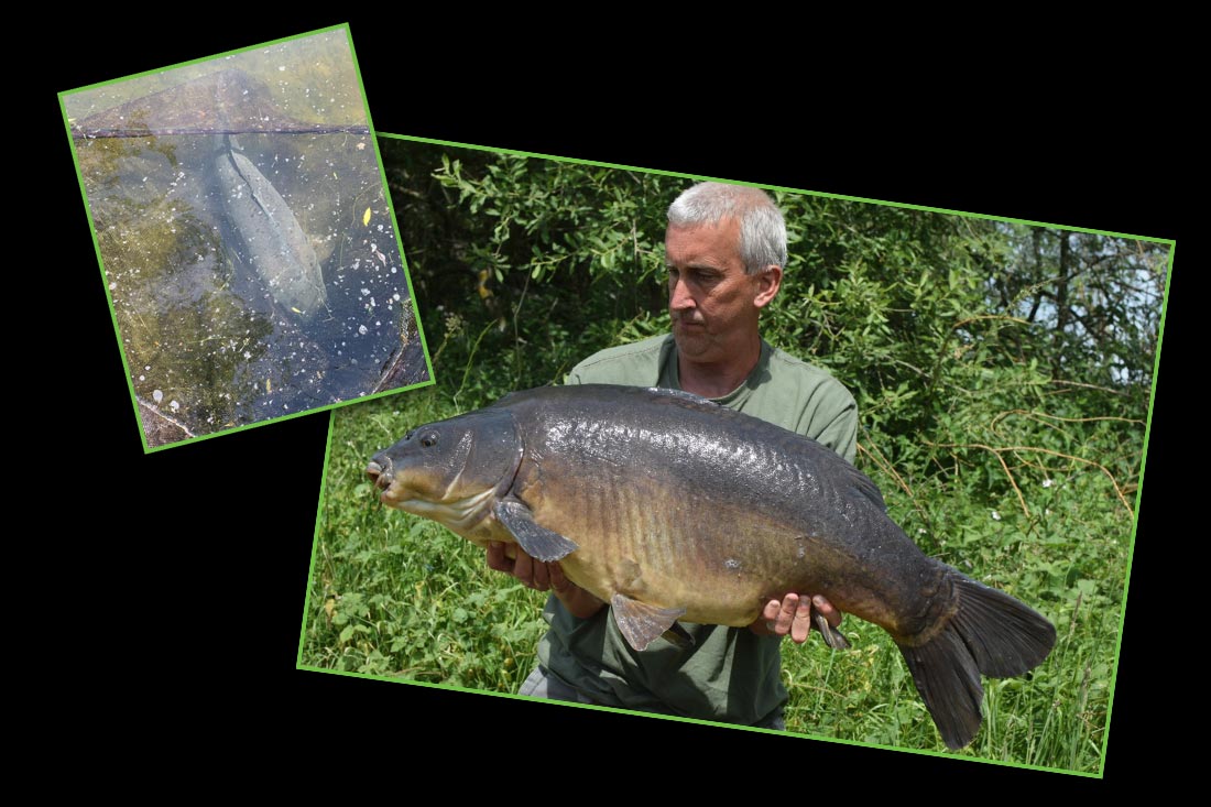 I was back a week later, and to be honest I went straight back into the swim from the last trip. It was an easy decision, as with one cast of a lead I found the tiny spot to the left was now far bigger! The bait had done its magic, and within an hour I had a 22lb mirror on the bank. I had 3 more too, including a dark 36 lb mirror that was my only take from the right gravel spot.