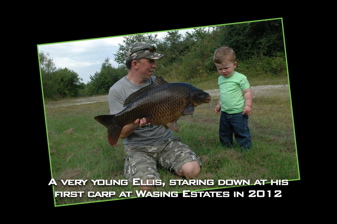 Ellis has night fished with me a few times, annually we always try and make the long weekend at Easter and opportunity for a couple of nights on the bank. With Easter falling in the heart of the spring, its favourable for young children with milder weather and even good periods of sunshine. Then as we know, the chance of a bite or two increasing which keeps children more engaged. Ellis has a camo onesie, packs his usual night-time owl clock and a few other essentials. Year on year, he always wants me to cook the same evening meal (pasta and meat balls) and loves breakfast in his bed come morning. In 2016, we had a cracking few days on a private syndicate close to home and bagged a new lake record at 33lb 4oz. The picture of us together went on to win a prize in Carp Talk. The following day after the lake record, Maxine popped in with Zach and we had our second fish of the trip, in the shape of a dark pristine looking common. This was Zach’s first close view of a carp.