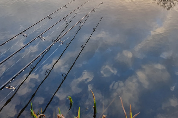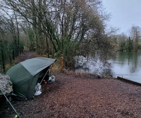 The next morning, I was up and out with the barrow loaded and the boots on, I pushed my way around to Walkers Pitch next to the Boathouse where I felt this would give me the best line lay and angle to fish to what I’d heard the night previous. After settling into the swim and setting up well back from the water I started to look for some firm spots, I committed an hour or so to finding 3 spots and with that done I set out tying some rigs up for my last night on the pool.