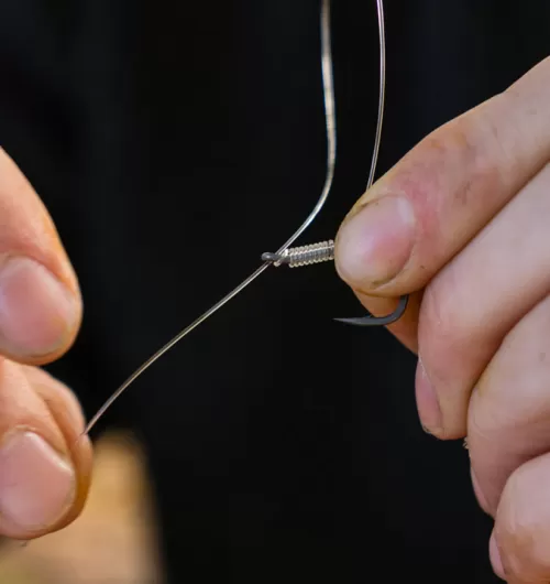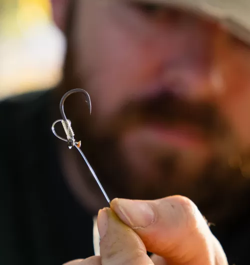 It is quite simply perfect for the job, much like a Chod rig, it almost guarantees presentation, as it will sit up off the lake bed, free from debris, cocked ready to go, and is more selective of big fish, but unlike the Chod rig, the Hinge tends to lend itself to baiting and spot fishing.
