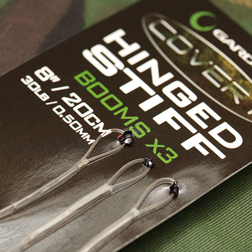 - Hinged Stiff Booms are 8inches long, and feature size 12 Covert Flexi Ring Swivels, making them ideal for use with either Hinged Rigs or 360 rigs.