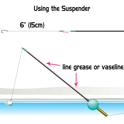 The Suspender allows the hooklink to be kept above the surface which means that fish do not see the silhouette of the hooklink drastically reducing the chances of fish turning away at the last moment.