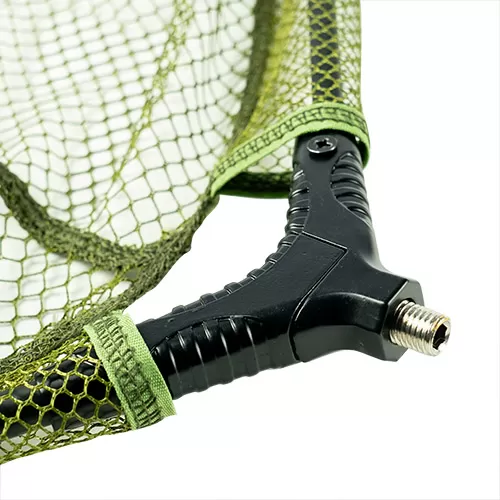 It features a super strong die cast spreader block and aluminium frame, which makes it perfect for using on fast flowing rivers or weedy stillwaters. Each net has been fitted with a soft fast drying olive mesh and has enough depth to safely retain the biggest of barbel allowing them time to safely recover before their release. The 3/8 BSF brass spreader block is compatible with all landing net poles and each net is supplied with a nylon stink bag.